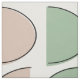 Moderne Halbmondstoffe aus dem Mittelalter mit hellgrün, hellcreme und hellrosa auf weißem Hintergrund.