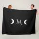 Minimalistische halbmondfarbene Monde ergänzen Ihr Monogramm oder Ihre Initialen auf dieser klassischen, schwarz-weißen Vliesdecke. ♡ Idyllfire