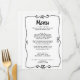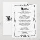 Ein buntes Retro funky modernes, schwarz-weiß Hochzeitsmenü. Das Design ist schick, mit weißem Hintergrund und schwarzer Typografie. Mit handgezogenen Rahmen. Ein perfekter und passender Rahmen für die ganze Suite.