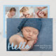 Herzlich willkommen bei Ihrem kleinen Foto mit dieser süßen und modernen Geburtsankündigung mit dem horizontalen Foto Ihres Babys und dem Wort "Hallo" in einem fröhlichen, himmlisch blauen handgeschriebenen Drehbuch. Personalisieren Sie die Vorderseite mit dem Namen Ihres Babys, dem Geburtsdatum und den Geburtsstatistiken für eine herzliche Einführung. Auf der Rückseite befindet sich eine Collage aus sechs quadratischen Fotos mit Platz unten, um die Namen Ihrer Familie zu teilen - eine charmante und stilvolle Wahl, die perfekt zum Feiern von kleinen Jungs geeignet ist.