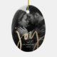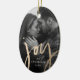 Elegantes, modernes Urlaubssornament mit "joy" in einem Imitat mit Goldfolie, handgeschriebenem Skriptüberlagern. Personalisieren Sie die Vorderseite des Ornaments, indem Sie Ihren Namen und das Jahr hinzufügen. Der Schmuck kehrt zu einem Muster von Schneeflocken aus Sternexplosion und Gold zurück.
