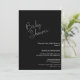 Diese einfache, schwarz-weiße Babydusche lädt Sie zu Ihrer Feier lassend ein. Es hat ein einfaches, weißes, handgeschriebenes Skript mit schlichtem Schriftart. Personalisieren Sie diese durch Hinzufügen von Namen, Daten, Zeiten, Orten und anderen Informationen.