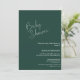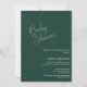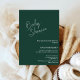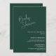 Diese smaragdgrüne Babydusche lädt Sie lassend zu Ihrer Feier ein. Es hat ein einfaches, weißes, handgeschriebenes Skript mit schlichtem Schriftart. Personalisieren Sie diese durch Hinzufügen von Namen, Daten, Zeiten, Orten und anderen Informationen.