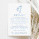 Vervollständigen Sie Ihre Hochzeitssuite mit dieser Karte mit einer handgezeichnet blauen Palme, die sich auf einem weißen Hintergrund befindet. Diese Karte ist für Hochzeiten am Strand oder in den Tropen konzipiert und bietet viel Platz, um Unterkunftsdetails, Empfang-Informationen und Ihre Hochzeitswebsite zu beinhalten. Eine praktische und stilvolle Ergänzung zu Ihrem Set.
