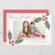 Moderne und handgezeichnete Urlaubsorten und Blätter umrahmen Ihr Foto mit einem Pinselskript, das "Frohe Weihnachten" sagt. Hinzufügen von 3 zusätzlichen Fotos zur Rückseite