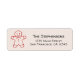 Ein lustiges, skurriles Weihnachts-Rücksendedesign. Mit einem Set aus einem roten, handgezogenen Lebkuchen auf cremefarbenem/rosa Hintergrund können Sie die dunkelgraue Typografie mit Ihrem eigenen Namen und Ihrer eigenen Adresse ändern.