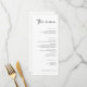 Dieses einfache, moderne Hochzeitsmenü bietet ein elegantes, zeitgemäßes Design mit elegantem, fließendem Skript. Das minimalistische Design und die stilvolle Handschrift machen es zu einer raffinierten Ergänzung zu jedem Hochzeitstisch, ideal für Paare, die eine schicke und moderne Ästhetik suchen.