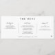 Diese einzigartigen horizontalen Hochzeitsmenüs verfügen über ein modernes Schriftzeichen in einem einfachen Schwarz-Weiß-Design. Personalisiert mit den Namen der Paare und dem Hochzeitstag fügen sie Ihrem Empfang eine stilvolle und zeitgemäße Touch hinzu, die Eleganz mit einem personalisierten Flair für Ihren besonderen Tag verbindet.