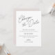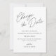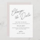 Maßgeschneiderte vertikale Hochzeitsaufschiebung/Ändern der Datumskarte mit modernem Schwarz-Weiß-Schriftzeichen auf der Vorderseite, farbiger Hintergrund auf der Rückseite.