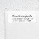 Individuell gestaltete Rücksendeadressen-Aufkleber mit personalisiertem Familiennamen in modernen Handschriften. Personalisieren Sie Ihre Auswahl mit Namen, Adresse und Hintergrundfarbe. Geeignet für Ankündigungen, Einladungen, Karten, Briefe und mehr!