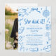 Moderne Handzeichnung Sie hats geschafft Blau Absc Einladung