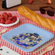 Feiern Sie die jüdischen Ferien und die Wintersaison mit diesen schönen Tellern. Was für eine schöne Touch für Ihre Feierlichkeiten und Familienfeiern während des Festes der Lichter. Dieses moderne Design zeichnet sich durch einen glücklichen Schneemann aus, der einen blauen Samthut mit einem David-Stern auf der Brille, Ohrmuffs, Milben und einem blau gestreiften Schal trägt. Der Kranz enthält schöne Schneeflocken, Poinsettias, Ikkeln und den Star of David in verschiedenen Designs. Die Plakette in der Mitte enthält die inspirierende Botschaft: "Scatter-Freundlichkeit wie Schneeflocken." Der Hintergrund ist eine wunderschöne, koordinierende blaue Farbe. Erhältlich in quadratischen oder runden Tellern oder runden Schalen. Kranz, fotografiert beim Festival der Bäume, Orlando Museum of Art, von Glenda Motsavage, Reiseschreiber und Autor.