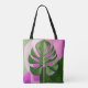 Orchideenrosa und olivgrüne Farbgebung. Moderne stilisierte Hibiskus- und Plumeria-Blume sind auf tropischen Blätter auf einem abstrakten Hintergrund aufgebaut. Das Design erinnert an die Blume, die in den 40er und 50er Jahren in Vintagen Aloha-Shirts verwendet wurden. Dieses Design ist umkehrbar! Die Rückseite ist ein Solo modernes stilisiertes Monstera Blatt auf einem abstrakten Hintergrund. Das Muster kommt in mehreren Farben.