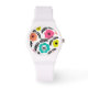 Moderne und fette Blume in Sommerfarben mit schwarzer Blattdekoration auf personalisierter Uhr.