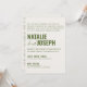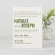 Diese doppelseitige Hochzeitseinladung ist perfekt für Sie, wenn Sie nach einem einzigartigen und leicht bearbeitbaren Design suchen. Eine elegante, einfache, minimalistisch cremegrüne Hochzeitsvorlage alles in einer Einladung. Das ist mit schlichtem, hellen cremefarbenen Hintergrund versehen. Und fett grün Farbe elegante Braut und Bräutigam Vornamen . und bearbeitbare Infos mit Namen auch in der Rückseite mit ganzen Hochzeitsdetails wie Empfang, Hotel, uAwg und Hochzeitswebsite. Erschwinglich und es ist auch digitale elektronische E-Einladung, wenn Sie gewollt, es per Text oder E-Mail zu senden. Alle Informationen können durch Anklicken des Buttons Personalisieren angepasst werden. So packen Sie es und machen Sie es zu Ihrem, sodass Sie verlobt und aufgeregt einladen .