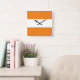 Dieses sportlich elegante Design besticht durch einen breiten, grenzenlosen, weißen Streifen im nautischen Zentrum, der sich nahtlos in die farbenfrohen orangefarbenen Streifen einfügt.
