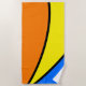 Dieses farbenfrohe, moderne Design zeichnet sich durch hellorange, gelb und blau großzügige Kehrkurven aus, die in schwarz umrissen sind.
