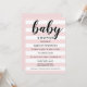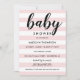 Die elegante Babydusche mit hellrosa und weißen Streifen in horizontaler Linienführung und kontrastierendem schwarzem Text, der für Ihre Veranstaltung personalisiert sein kann. Die hellen Farben Schwarz und Pastellfarben ballet Rosa können individuell angepasst werden.