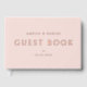 Modernes und elegantes Gästebuch mit dem Namen der Braut und des Bräutigams in echter Folie. Die hellrot-rosa Hintergrundfarbe kann im Designwerkzeug geändert werden.