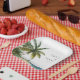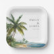 Diese modernen Aquarellpalmen tropischen Strand Hochzeitszettel Teller können mit Ihren Informationen in der modernen Typografie personalisiert werden. Entwickelt von Thisisnotme©