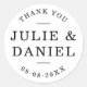 Stilvolle moderne Hochzeit danke Ihnen Aufkleber. Personalisieren Sie es, indem Sie den Platzhalter-Text durch Ihre eigenen Informationen ersetzen. Für weitere Optionen, wie zum Beispiel den Schriftart zu ändern und ihn zu vergrößern oder zu verändern, klicken Sie auf den Button "Anpassen". *Bitte beachten Sie, dass das Zazzle-Wasserzeichen, das in der Zoomvorschau angezeigt wird, NICHT auf dem gedruckten Endprodukt erscheint. © Rosewood and Citrus