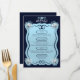 Moderne Hochzeit der blauen Boho-Seestreitkräfte Menükarte
