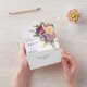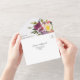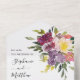 Die Hochzeitsfeiern sind in einem modernen, floralen Aquarell-Design mit bordeauxroten, lila und rosafarbenen Blume und Blattwerk gehalten. Auch Matching-Schreibwaren sind erhältlich.
