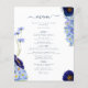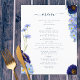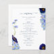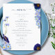 Schöne bohfarbene Wildblumen und blühendes Blattwerk in Blau, Maisblume, Marineblau, lila und grünen Farbtönen, ideal für einen einzigartigen Frühlings- oder Sommertag der Hochzeitskarte. Elegantes modernes Typografie-Skript in marineblau ergänzt das skurrile boho atemberaubende handgemalte Kunstwerk, das aus Kornblumen, Mohn, Kosmos, vergiss mir Noten und zartem Blattwerk besteht. Chic böhmisches Hochzeitsmenü, perfekt für eine Frühjahrswiese, Sommergartenhochzeit. Original-Kunstwerk von Catherine Sweetman