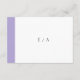 Moderne QR Code Hochzeit RSVP Karte mit einem kühnen digitalen Lavendel lila Band entlang der links Seite. Die Vorlage bietet Text in einer Kombination aus einem klassischen Serif-Schriftart, einem modernen Serif-Schriftart und einem eleganten Skript. Auf der Rückseite befindet sich neben dem links Band ein Monogramm. Dieses einfache und minimale Design ist ideal für eine traditionelle, formelle Hochzeit.