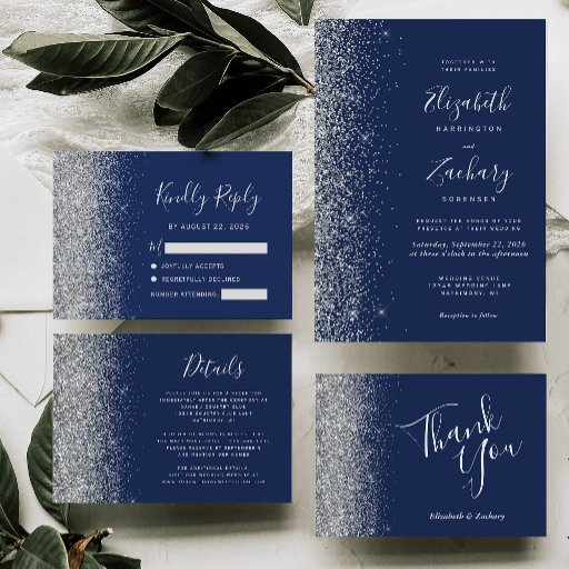 Navy Blue Silver Glitter Wedding SuiteDesignt von Akhates Designs