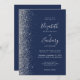 Die links Kulisse dieser modernen Hochzeitseinladung besticht durch ein silbernes Imitat-Glitzer-Design. Der anpassbare Text kombiniert silbergraue Handschrift, Copperplate und kursiv Schriftart auf marinebasischem Hintergrund. Die Rückseite bietet Platz für Hochzeitsdetails auf einem soliden marinen Hintergrund, zusammen mit einem QR-Code können Gäste scannen, um Ihre Website und UAWG, die die Kosten für den Druck und Versand separater RSVP-Karten rette.