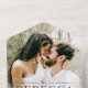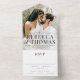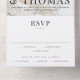 Ein modernes Overlay mit großen Namen und ein volles Foto sind die Merkmale auf diesem alles in einer Hochzeitseinladung mit einer Antwortkarte.