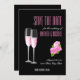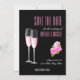 Feminines schönes Design verbindet eleganten schwarzen Hintergrund mit phantastischer moderner Typografie und rosa Blume sowie Champagnergläser. Save the Date Karte für Ihre Hochzeit ist wichtig und Sie verdienen die beste. Dieses elegante und luxuriöse Design wird perfekt sein.