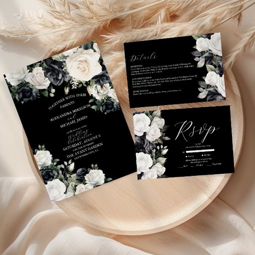 Mit unserer eleganten Schwarz-Weiß-Blumen-Einladung stellen Sie Ihrem besonderen Tag eine Touch zeitloser Eleganz vor. Dieses exquisite Design besticht durch delikate Blumenmotive, die kunstvoll in einer atemberaubenden Schwarz-Weiß-Palette verwoben sind und eine klassische und dennoch moderne Ästhetik schaffen, die jedes Hochzeitsthema ergänzt. Hauptmerkmale: Atemberaubendes Blumendesign: Die feinen, schwarzen Blumenmuster sind wunderschön kontrastiert mit einem knusprigen, weißen Hintergrund, was Ihre Einladung unterstreicht und gleichzeitig Eleganz ausstrahlt. Hochwertige Materialien: Diese Einladung, die auf hochwertigen Pkw gedruckt wird, bietet ein luxuriöses Ambiente und garantiert Langlebigkeit. Wählen Sie aus verschiedenen Ausführungen, inklusive Matte oder Hochglanz, um Ihren Hochzeitsstil anzupassen. Anpassbare Optionen: Personalisieren Sie Ihre Einladungen mit Ihren Namen, Ihrem Hochzeitstermin und anderen Details. Mit unseren einfach zu bedienenden Vorlagen können Sie ein einzigartiges Stück kreieren, das Ihre Persönlichkeit und Liebe widerspiegelt. Vielseitiges Format: Die Einladung ist mit ihren 12x18 perfekt für den Versand und passt zu den Standardumschlägen, sodass sie für Sie und Ihre Gäste bequem ist. Warum wählen Sie diese Einladung? Unsere elegante Schwarz-Weiß-Blumen-Einladung ist perfekt für Paare, die ein elegantes und raffiniertes Aussehen suchen. Seine Vielseitigkeit erlaubt es, eine Vielzahl von Hochzeitsthemen, von rustikal und Vintag bis modern und minimalistisch, zu erfüllen. Mit seinem fesselnden Design und seinen individuell gestaltbaren Features verlasst diese Einladung Ihren Gästen einen bleibenden Eindruck. Machen Sie Ihren Hochzeitstag mit dieser atemberaubenden Blumeneinladung unvergesslich. Bestellen Sie noch heute Ihre Bestellung und planen Sie die Feier Ihres Lebens!