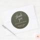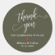 Moderne Hochzeit Minimalistisch Dankeschön Geschenke Klassische Gefallen Round Sticker, in klassischer Schrift, rotes Herz, mit Bräu und Bräutigam Unterschrift und Hochzeitstag, Olivgrün Thema.