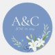 Moderne Hochzeit mit blauer Flora Runder Aufkleber