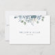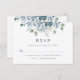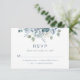 Moderne, blaue Aquarellfarben, florale Hochzeitskarte RSVP. Diese moderne Hochzeitskarte bietet eine wunderschöne handbemalte Aquarellmauer, staubblaue und cremefarbene Rose mit schlauen grünen Blätter. Das ist Teil der Dusty Blue Floral Wedding Collection.
