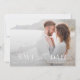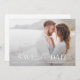 Senden Sie Ihre Verlobung Ankündigungen im Stil mit dieser einfachen, modernen Foto Hochzeit Save the Date, mit einer handgeschriebenen Skripttypografie für das Wort Date. Ihr helles Verlobung-Foto ist stolz auf die Vorderseite, mit weißem Overlay-Text. Der Rücken ist weiß und enthält alle Ihre Hochzeitsankündigungen, inklusive Ihrer Hochzeitswebsite, in hübschem, trendigem Himmelblau (Enteneiblau? Pastellblau? Kann jeder sich auf den Namen dieser Farbe!) Copyright Elegant Invites by Anastasia Surridge, alle Rechte vorbehalten.