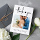 Elegante schicke Handschrift Skript einfach Schwarz-Weiß Hochzeit Dankeschön Karte mit individuellem Foto und ein kleines Herz. Personalisieren Sie es mit Ihren Daten und Text!