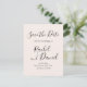 Unsere moderne Hochzeitskarte Save the Date verbindet Eleganz mit zeitgenössischem Design. Sie zeichnet sich durch ein schönes Drehbuch und einen Farbtupfer aus, um die Eleganz Ihres besonderen Tages perfekt zu erfassen. Es ist einfach, Ihre Einladung zu personalisieren, indem Sie auf die Schaltfläche "Bearbeiten mit dem Entwurfswerkzeug" klicken, um die Hintergrundfarbe und den Text anzupassen, um sicherzustellen, dass dieser Ihren einzigartigen Stil widerspiegelt.