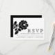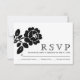 Schwarz-Weiß Rosa moderne Hochzeit RSVP Antwortkarte. Dieses zeitgenössische Design zeigt eine Vintage schwarze Rose und Ihre Formulierung auf weißem Hintergrund.
