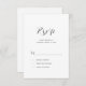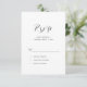 Elegante moderne Script Wedding RSVP Card. Ein wunderschönes Design mit schwarzem und kohlefarbenem Text auf weiß. Personalisieren Sie das Datum Ihrer UAWG Antwort. Text- und Hintergrundfarben vorne und hinten sind vollständig anpassbar. Zurück in solidem Weiß gezeigt. Wir laden Sie ein, unseren Zazzle-Shop, GJ Design Co, zu besuchen, um sich passende Produkte und mehr anzuschauen.
