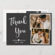 Elegantes, Minimalistisches, handgeschriebenes Script Grau White Wedding Foto Collage Dankeschön Karte. Stilvolle Hochzeit Multi Foto danke Ihnen Karte Vorlage mit zwei (2) Foto auf der Vorderseite und ein (1) Foto auf der Rückseite. Mit dem Text "Danke" in einem hübschen handgeschriebenen Typografie-Script-Schriftart in Weiß auf dunkelgrau oder kohlefarbenem Hintergrund. Personalisieren Sie den individuelle Name und danken Sie Ihnen Nachricht. Wenn Sie lieber Ihre Notiz handschreiben, löschen Sie einfach den Beispieltext, um mehr Platz zu machen. Wenn Sie Hilfe oder Matching Artikel benötigen, wenden Sie sich bitte an Designer!