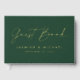 Einfaches, elegantes Gästebuch mit handgeschriebenem Goldfolienskript, kombiniert mit modernen Schriften vor dunkelgrünem Hintergrund. Personalisieren Sie das minimalistische Gästebuch mit Ihren Namen und Hochzeitstag. Fügen Sie dem Rückgrat des Gästebuches benutzerdefinierten Text hinzu, z. B. Ihren Namen, das Datum usw. Auf der Rückseite des Gästebuches wird das Foto der horizontalen Verlobung angezeigt. Das schicke Gästebuch "Jäger grün" und "Gold-Folie" sind perfekt für moderne Hochzeiten geeignet.
