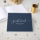Moderne Hochzeit von Navy Blue und Silver Script Gästebuch