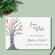 Diese einzigartige Hochzeitskarte rette-the-date ist mit einem bunten Mosaikbaum dekoriert. Einfach anpassbar. Ändern Sie mithilfe des Entwurfstools die Textgröße, den Stil oder die Farbe. Sie werden dieses exakte Bild von anderen Designern nicht finden, während wir unser Kunstwerk erstellen. Original Mosaik und Wasserfarbe © Michele Davies.