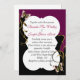 Moderne schauende Hochzeitseinladung erfolgt im Schwarzen und in Burgunder mit einem dekorativen herausgeschnittenen weißen Textbereich. Reben und Schmetterlinge verzieren die äußeren Ränder dieser eleganten Einladung. Fertigen Sie den Text in der Schriftartart, -größe und -farben zum Anzug Ihr Bedarf besonders an.