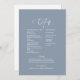 Eintrittskarte für die Hochzeitdetails. elegant. Blau und Weiß. Modern. Shuttle. Weiße Typografie.