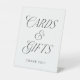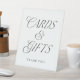 Moderne Hochzeitskarten und Geschenke Podestschild mit "Karten & Geschenke" in elegantem schwarzen Typografie-Stil: eine Kombination aus Kalligrafie und Serifenschrift. Personalisieren Sie die schwarz-weiße Hochzeitskarten und Geschenke Podestal Schild mit einer kurzen Danksagung oder Text nach Maß. Die Hochzeitskarten und das Geschenkschild sind perfekt für Ihre Hochzeit, Paardusche, Verlobungsfeier, Babydusche, Geburtstagsfeier oder besondere Veranstaltung.