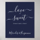 Liebe ist süß! Dieses schlichte und dennoch elegante Kalligraphie-Zeichen zeichnet sich durch elegante Kalligraphie aus. Passen Sie dieses elegante Hochzeitszeichen mit Ihren Namen an! COPYRIGHT © 2020 Judy Burrows, Black Dog Art - Alle Rechte vorbehalten. Moderne Hochzeitsstimmung Liebe Süß Personalisiertes blaues Navy-Poster